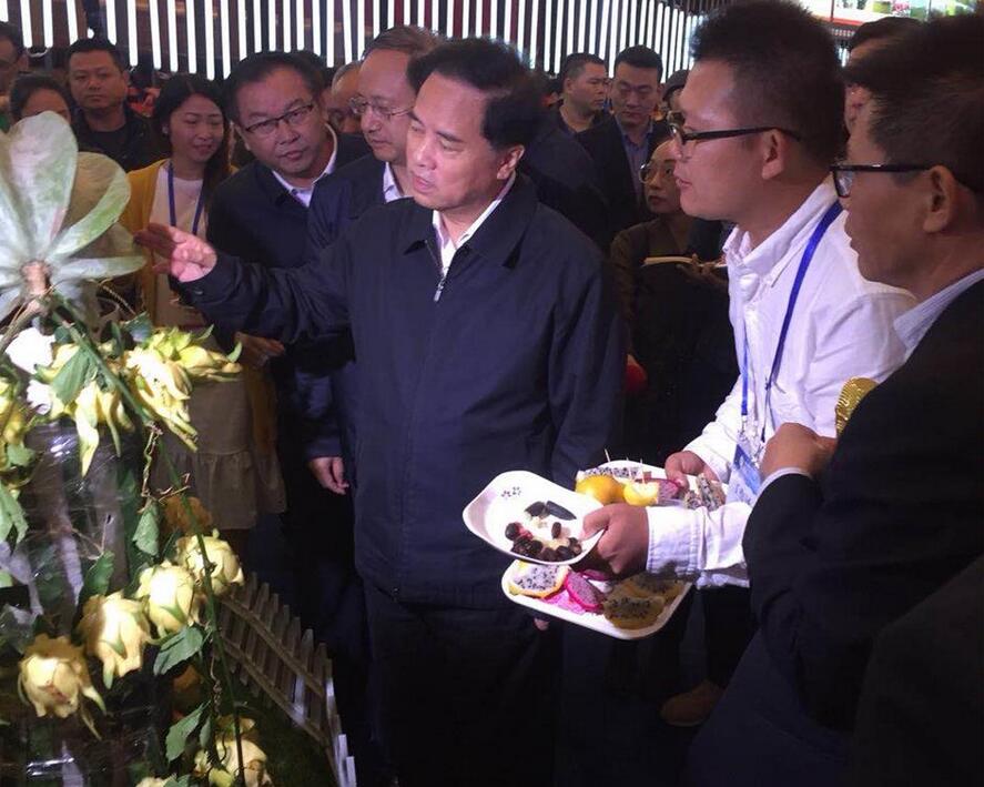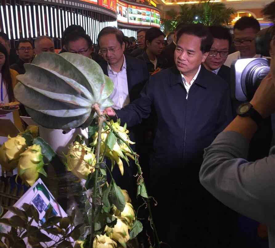 展會現場省委劉賜貴書記重點了解了厄瓜多爾燕窩果、盛大巨無霸黃龍、澳洲手指檸檬、非洲楊桃南瓜等新品種開發情況,盛大農業公司王俏總經理進行了重點介紹和匯報,受到劉書記等省領導的肯定,我們深受鼓舞。