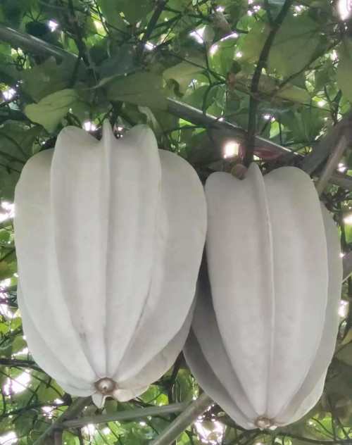 架子上尼日利亞的巨型楊桃南瓜也不甘寂寞,展現婀娜身姿