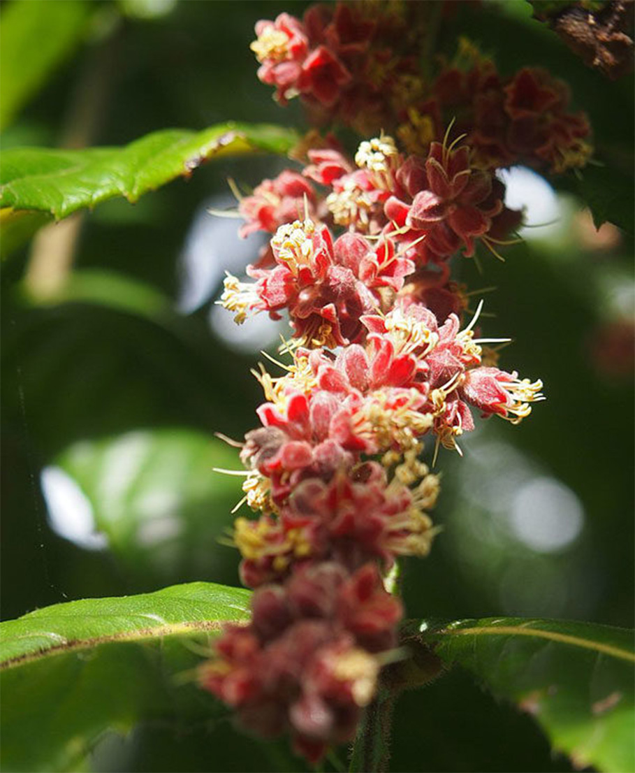戴維森李的樹形筆直細(xì)長,花開紅色與粉紅色,果實(shí)呈圓形漿果,奇特的是,這種果實(shí)是直接從樹干或粗枝干成串結(jié)出。未成熟時(shí)為綠色,成熟后則變?yōu)樯钭仙蛩{(lán)色。果肉呈深紅色,果香濃郁,口感柔軟多汁,略帶酸味。每顆果實(shí)內(nèi)含有兩顆星形的扁平種子,而且這兩顆種子中,只有一顆是可育的。戴維森李營養(yǎng)價(jià)值很高,富含抗氧化物質(zhì)和維生素,除了直接食用,它還可加工成果醬、果酒和甜點(diǎn),或磨成粉末,用于泡茶和烹飪等多種用途。